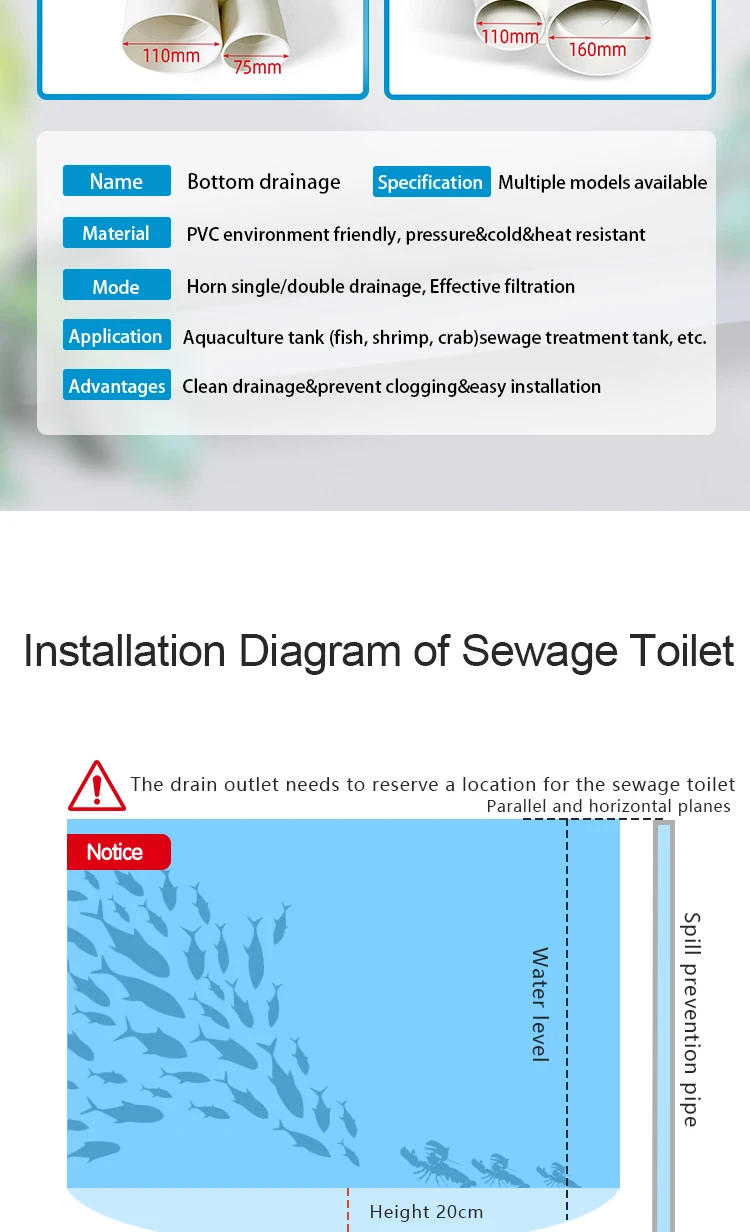 OEM&ODM Professional Drain Device Water Outlet Aquaculture Fish tanks Salt&Fresh Water Accessories Drainage