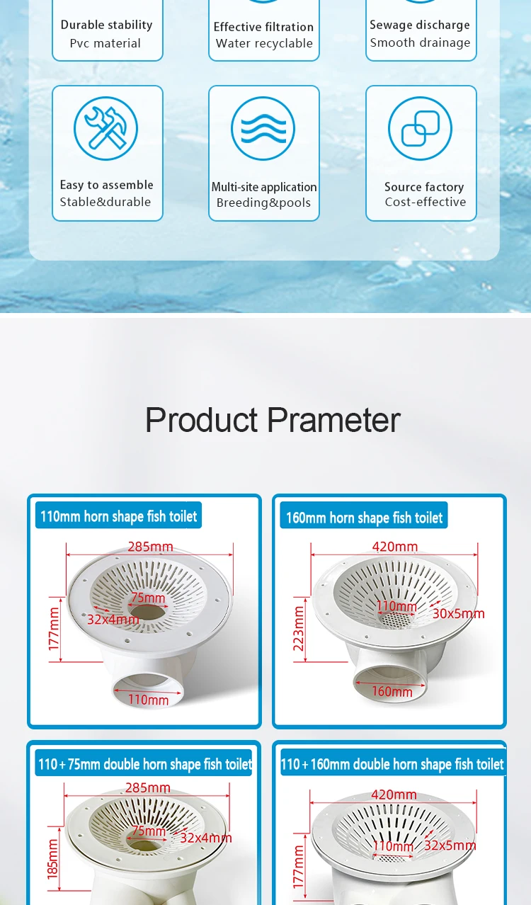 Factory Price Double Drainage Bottom Drains for Koi Ponds & Ponds Filters Sewage Separation Accessories